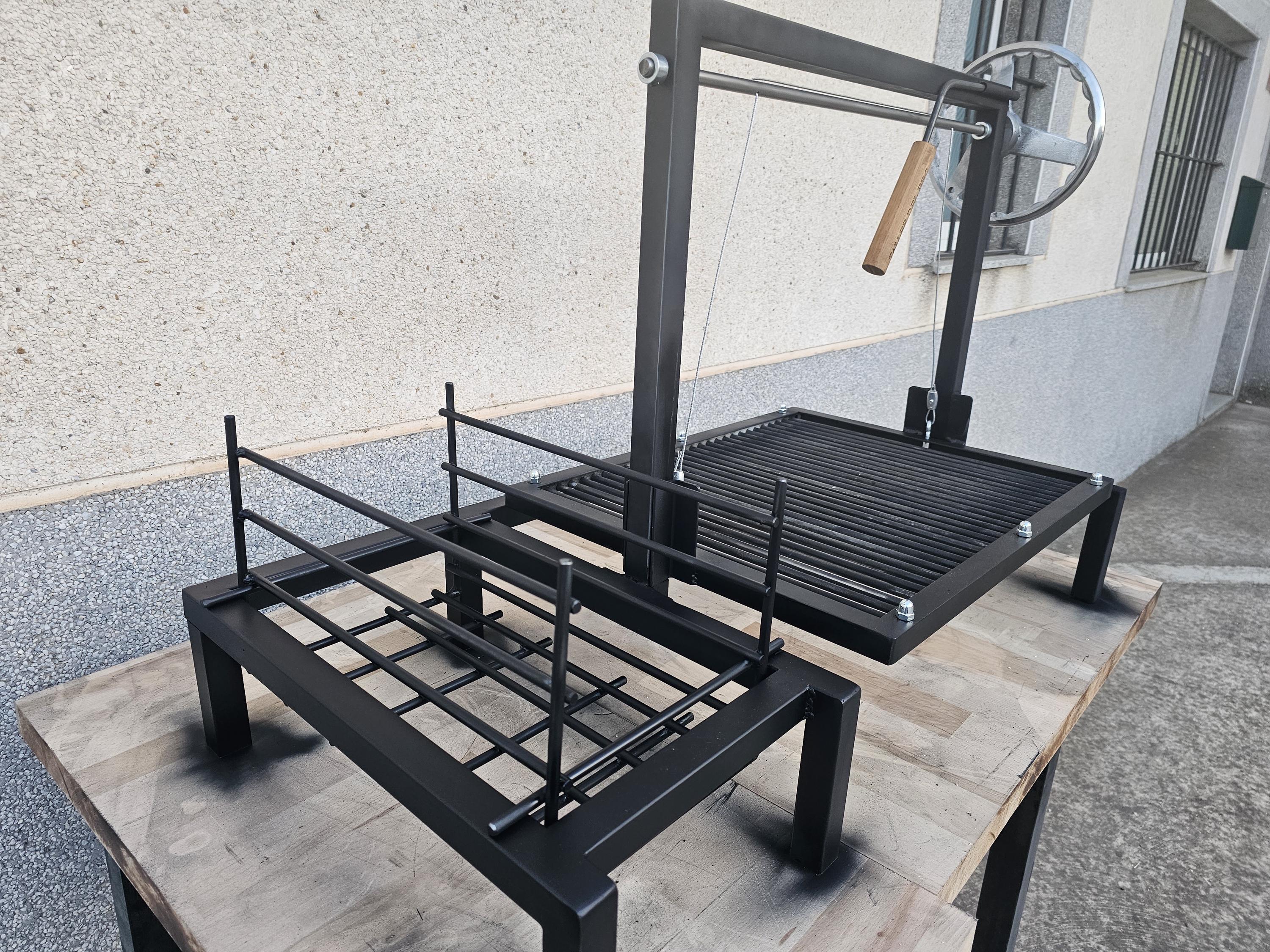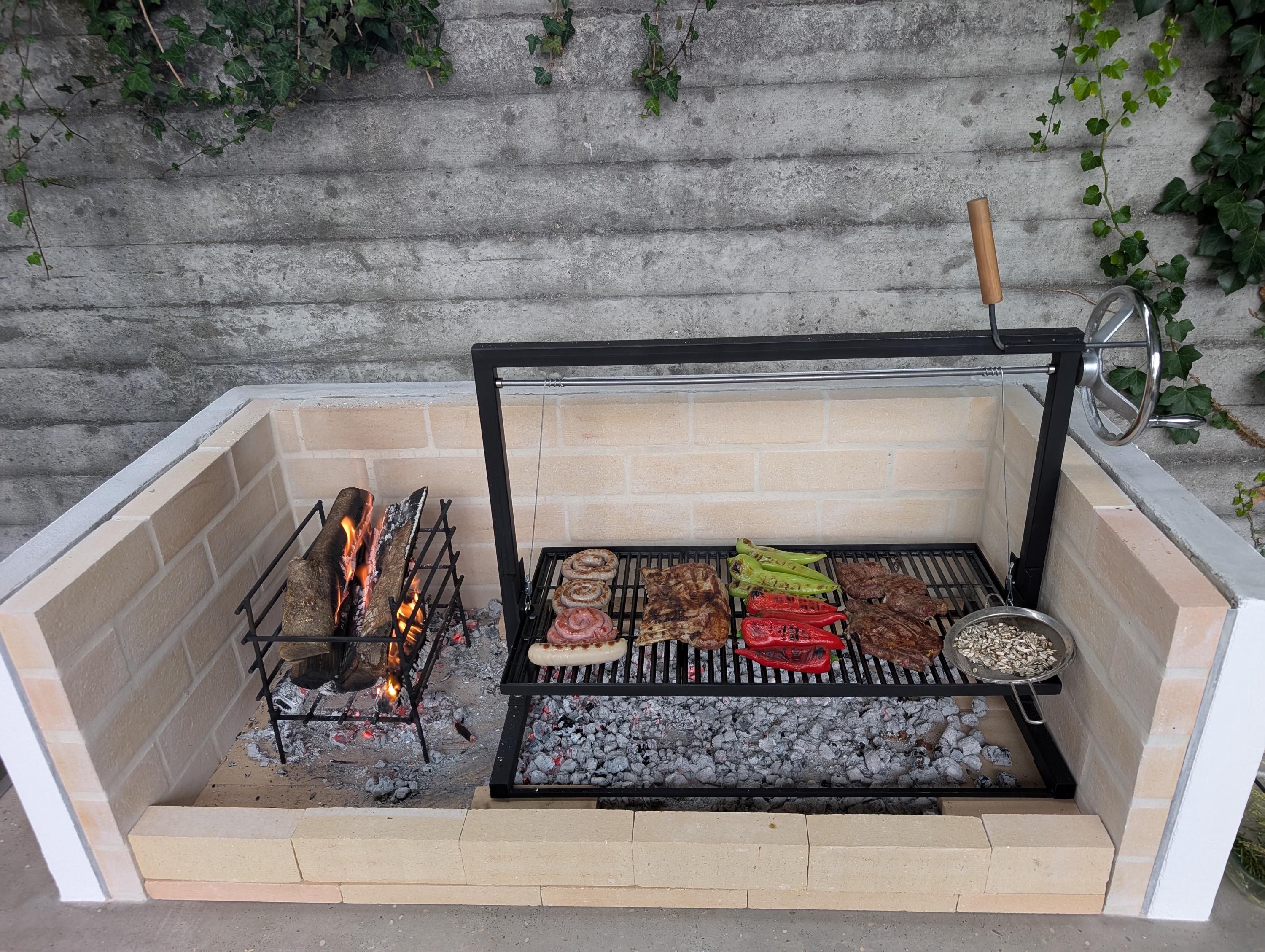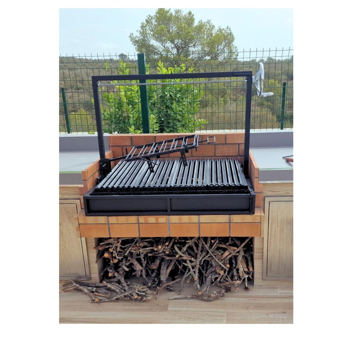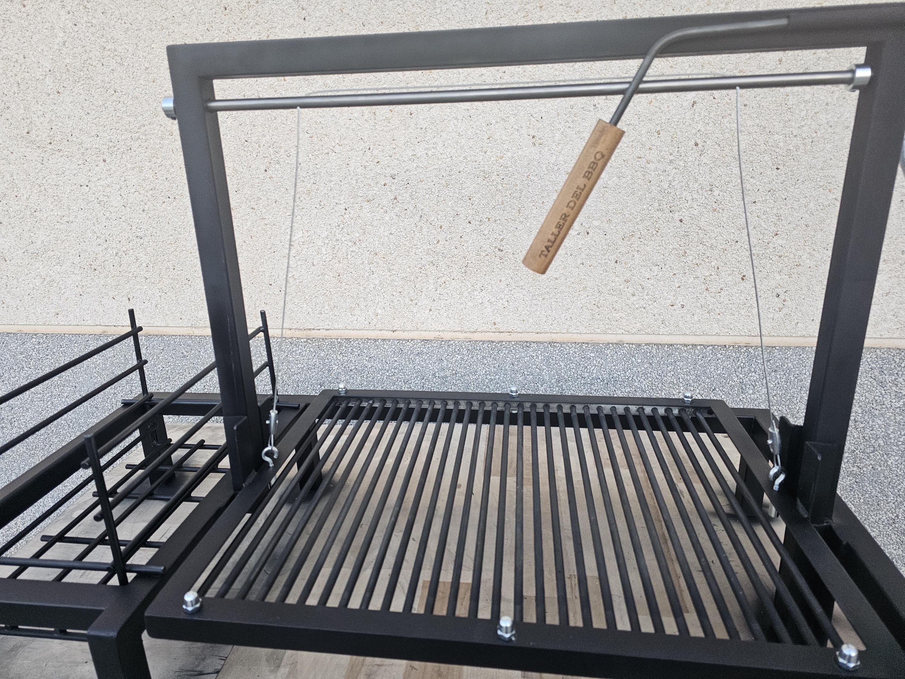 Parrilla Argentina con Brasero Medidas: 1.100mm × 650mm × 600mm #TallerDelBBQ Parrilla con Sistema de Elevación alargado para travesar muro y ampliar superficie de cocción/grill. Acero Reforzado con Sistema Elevable | Para Leña o Carbón | Estilo Santa María | Parrilla Desmontable