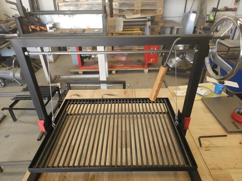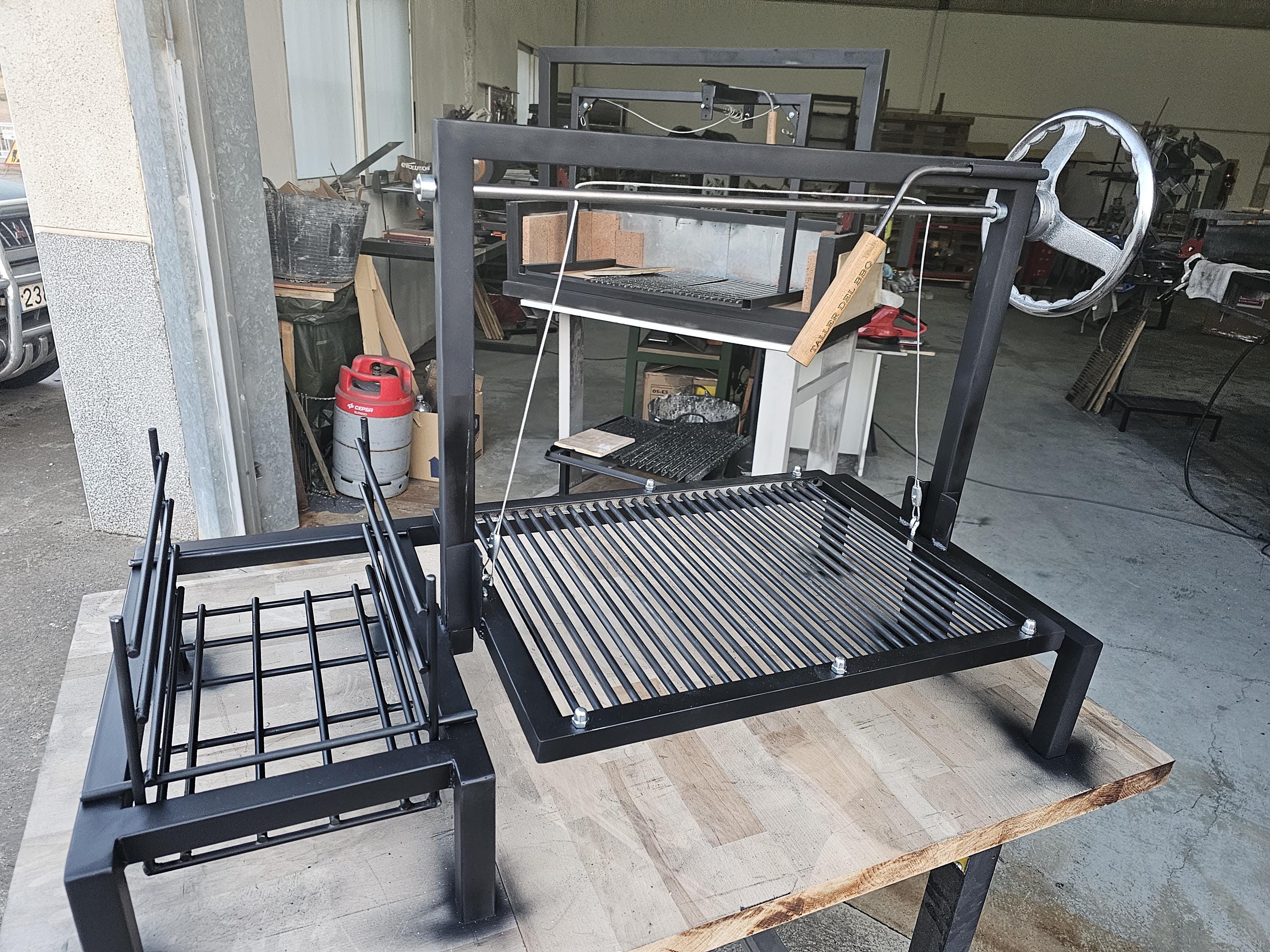 Parrilla Argentina Portátil. Medidas: 850mm x 480mm x 600mm #TallerDelBBQ| Estilo Santa María Acero Reforzado con Sistema Elevable | Leña o Carbón