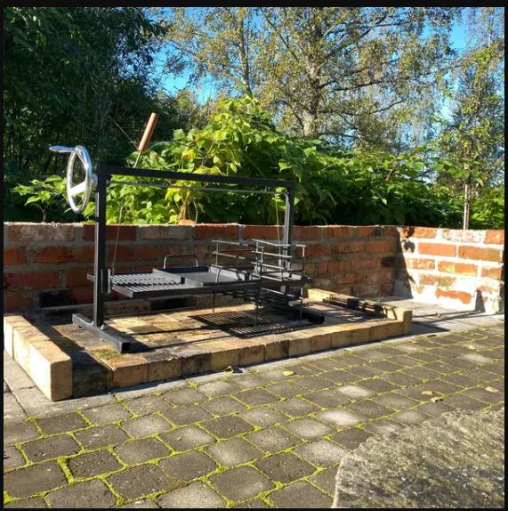 Parrilla Argentina con Brasero Medidas: 1.000mm × 500mm × 600mm #TallerDelBBQ Acero Reforzado con Sistema Elevable | Para Leña o Carbón | Estilo Santa María | Parrilla Fija