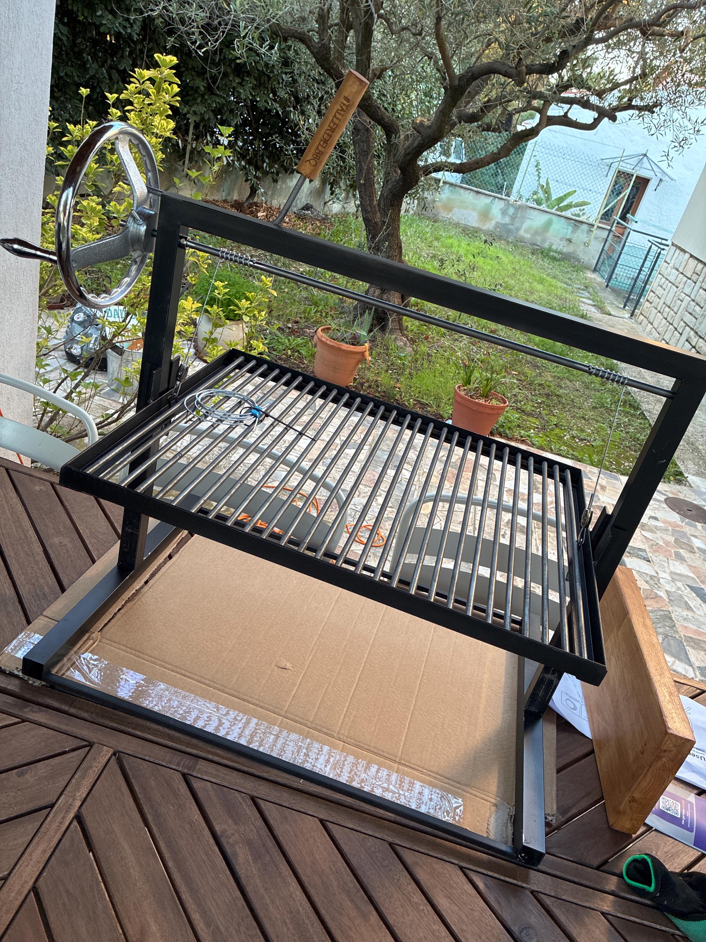 Una parrilla fantástica, con muy buenos materiales y un mecanismo de elevación bien diseñado. Hubo un pequeño retraso en el envío por las fechas (Navidad) y el trato y la comunicación fue excelente, atención de 10