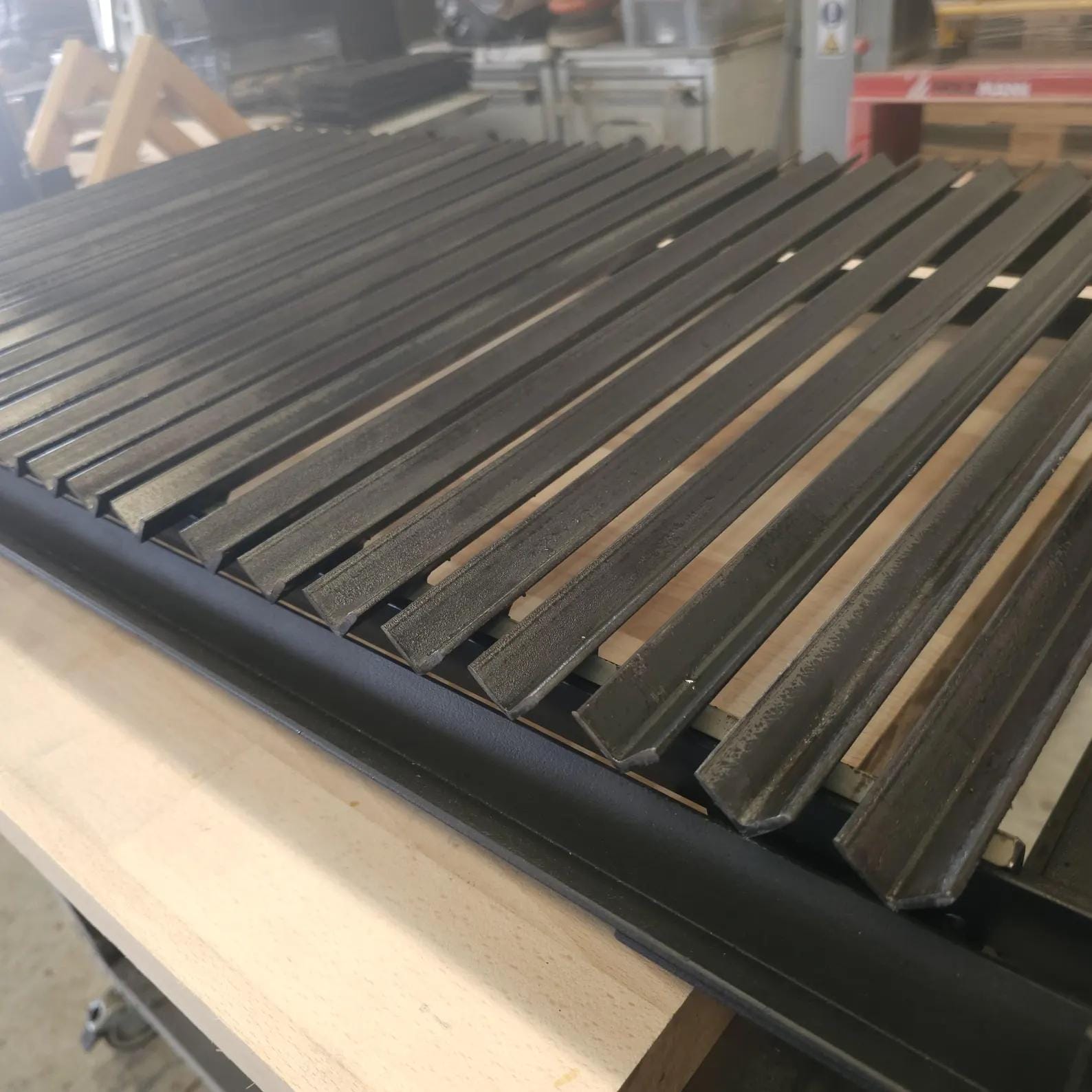 Manufactured using angle profiles of 20 × 20 × 1.5 mm in cold-rolled steel, forming “V” channels that allow proper grease flow.