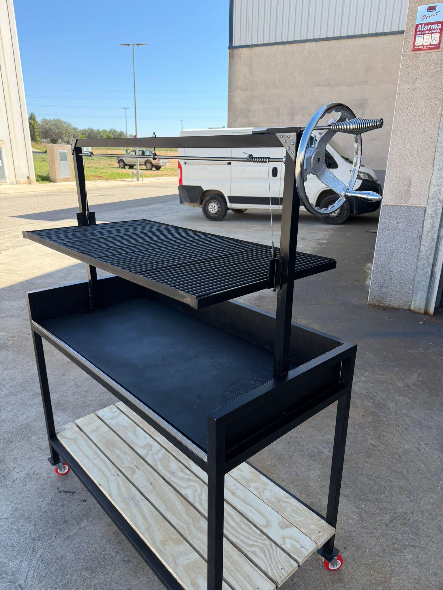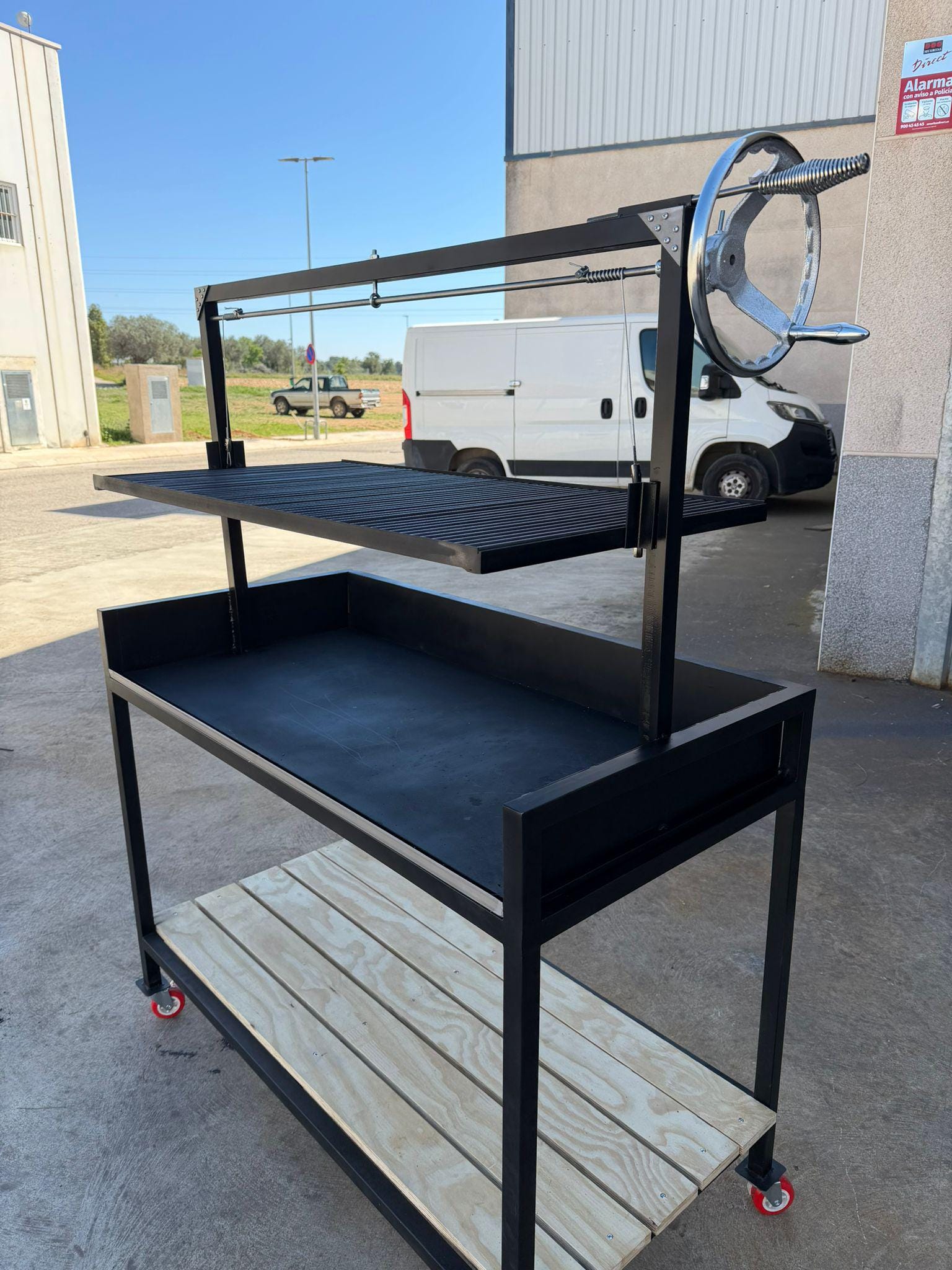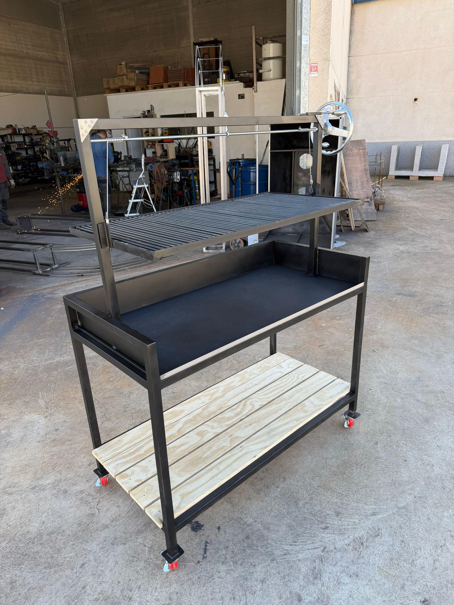 Fabricado en chapa de acero de 3 y 4 mm, incorpora un cajón inferior estructural que aporta rigidez y refuerzo al conjunto, garantizando una parrilla sólida, fiable y diseñada para durar toda la vida.