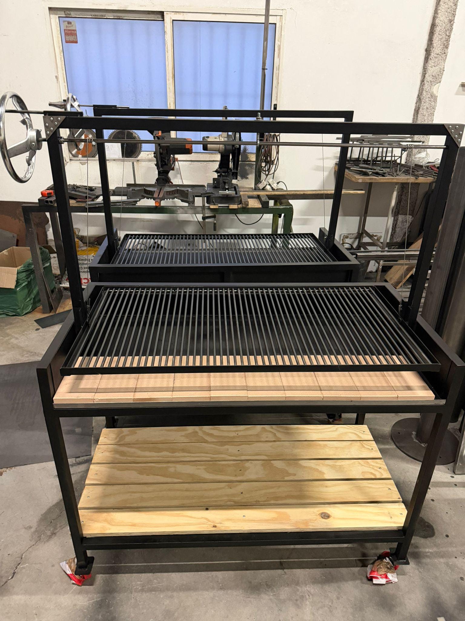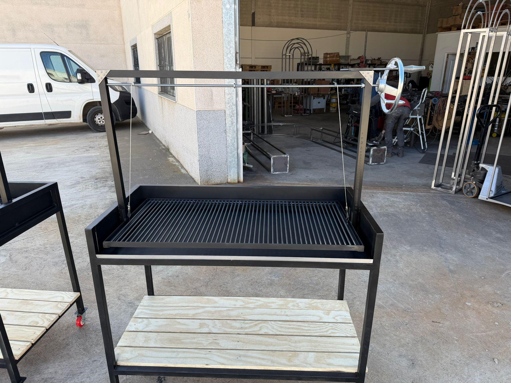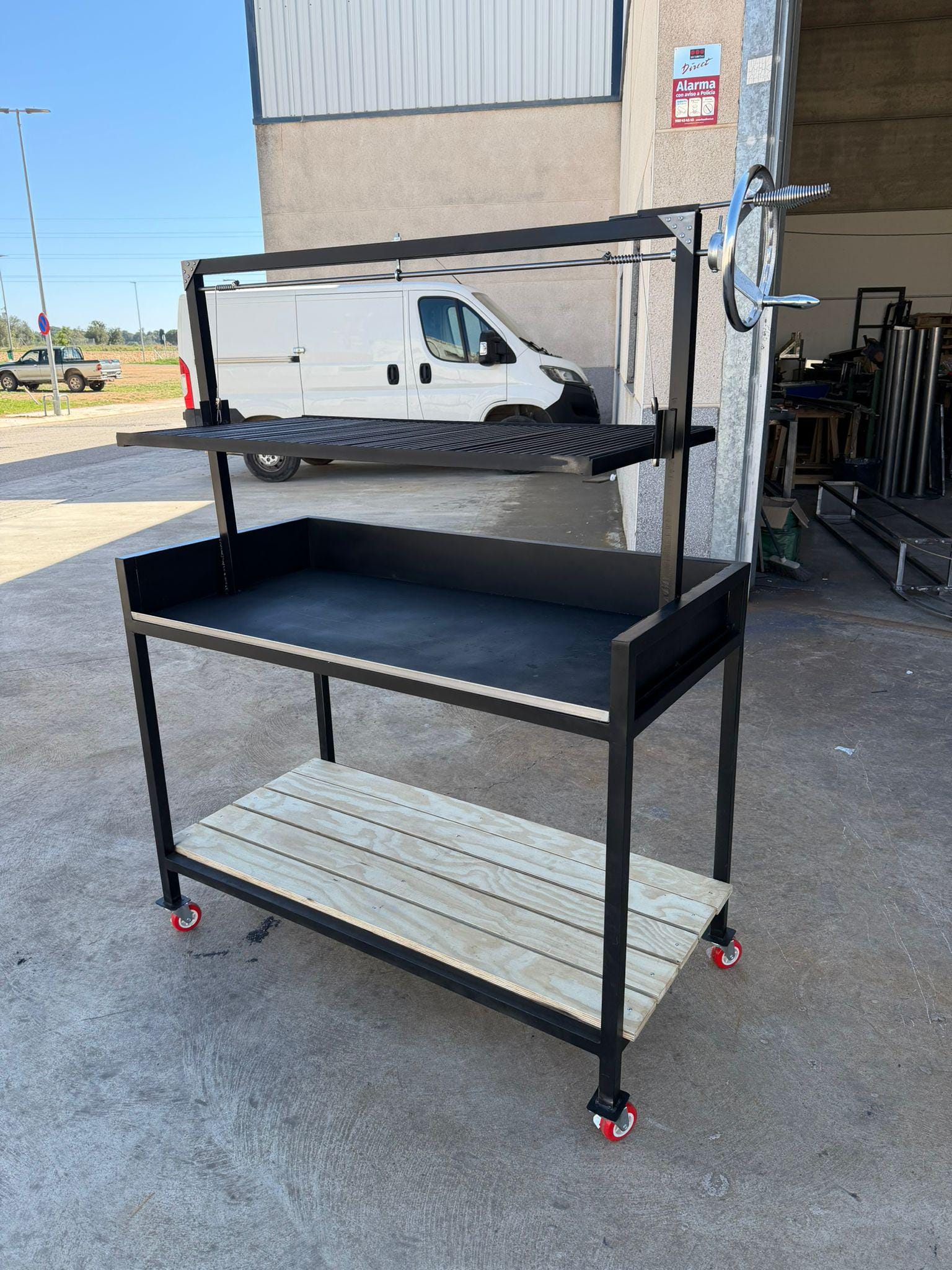 Fabricado en chapa de acero de 3 y 4 mm, incorpora un cajón inferior estructural que aporta rigidez y refuerzo al conjunto, garantizando una parrilla sólida, fiable y diseñada para durar toda la vida.